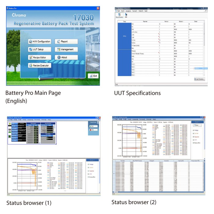 Chroma 17030系统搭配Battery pro软体,具备弹性的编程功能,可进行各通道完全独立测试,符合电池组高客制与多样化的需求,符合二次电 池组的各项测试需求,具备高度的稳定性与安全性,具备断电复归功能,让使用者测试资料不中断。