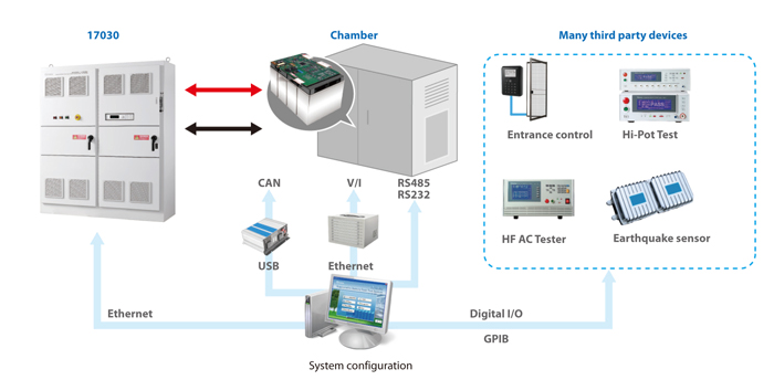 Chroma 17030系统具备可并联功能,可与相同型号设备进行并联,增加了使用者使用设备上的弹性,可达到设备高利用率。