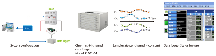 透过软体可整合资料收集器,在充放电过程中,读取多组的电压与温度纪录,其条件可转成保护启动条件或截止条件。
